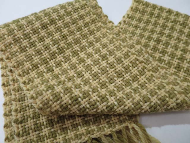 先日 「枇杷葉染め(前編)」 を書いたので、その「後編」を書かなければ! と、気になりながらも、またまた別の内容。今日、Upするのは、タマネギの皮とコーヒーの出がらしで毛糸を染めて織りあげた「千鳥格子のマフラー」です。