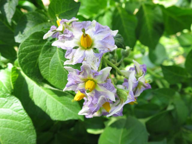 晴天が続いた連休の後半、春先に植えたジャガイモが花を咲かせました。