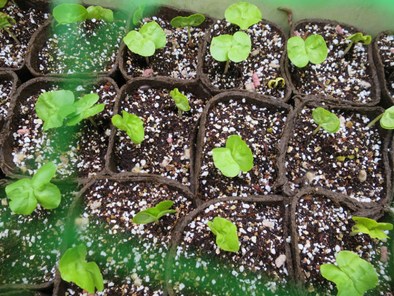 といっても、入手した真岡木綿の種はわずか。なので直まきせずにポットまいて大切に育てることにしました。今年は雨が多いので、うまく発芽できるのか!? 心配でしたが無事に元気な双葉を開きました。
