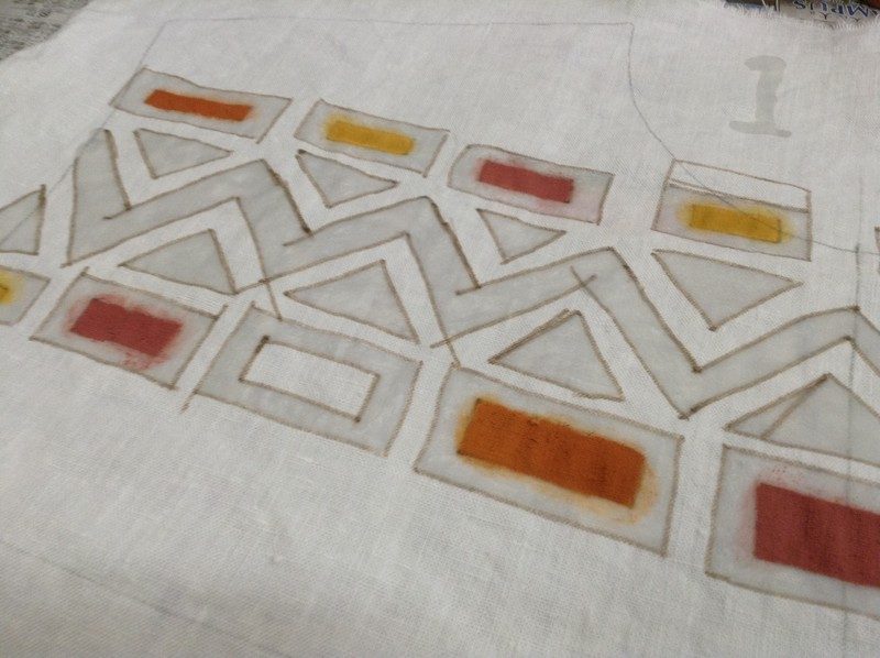 まずは、試験的に小さな布で「堰出し」という技法です。