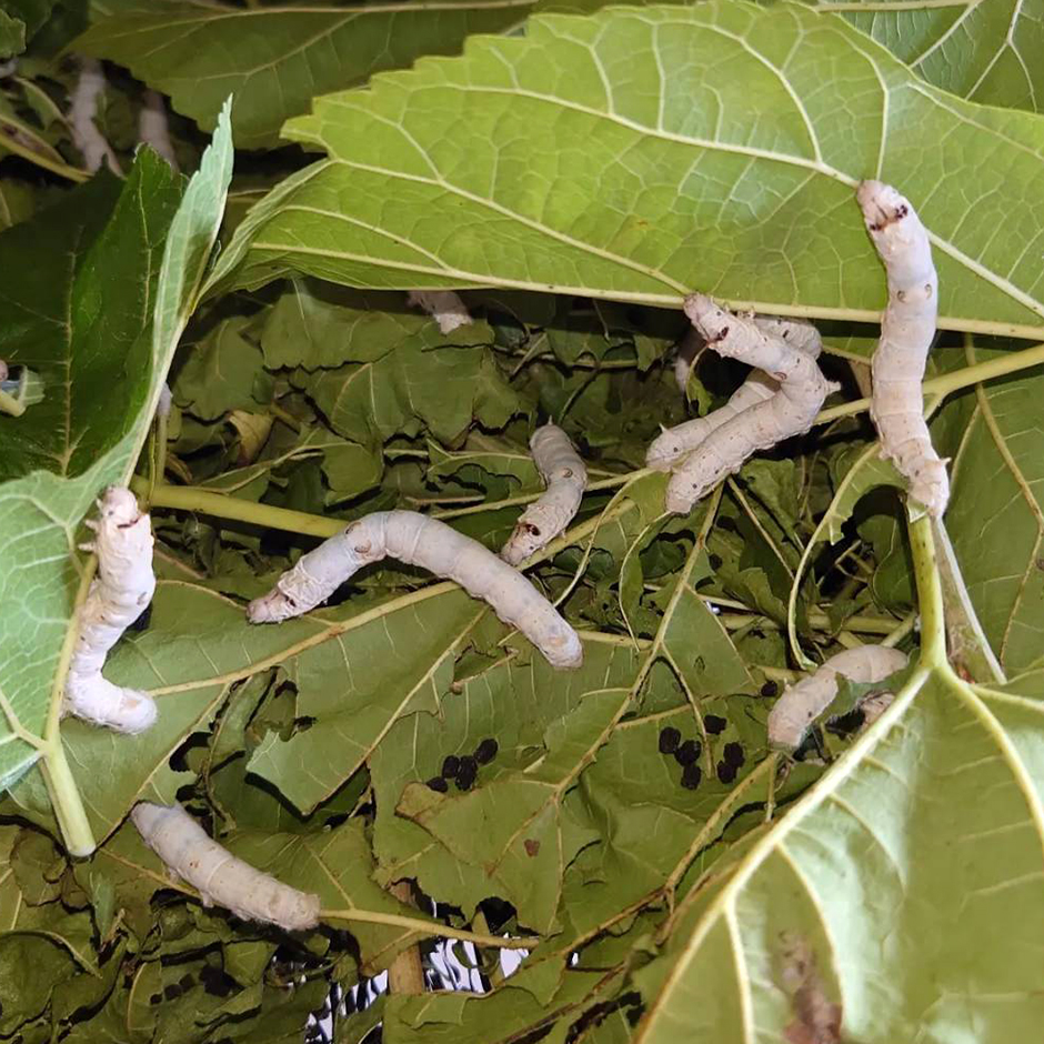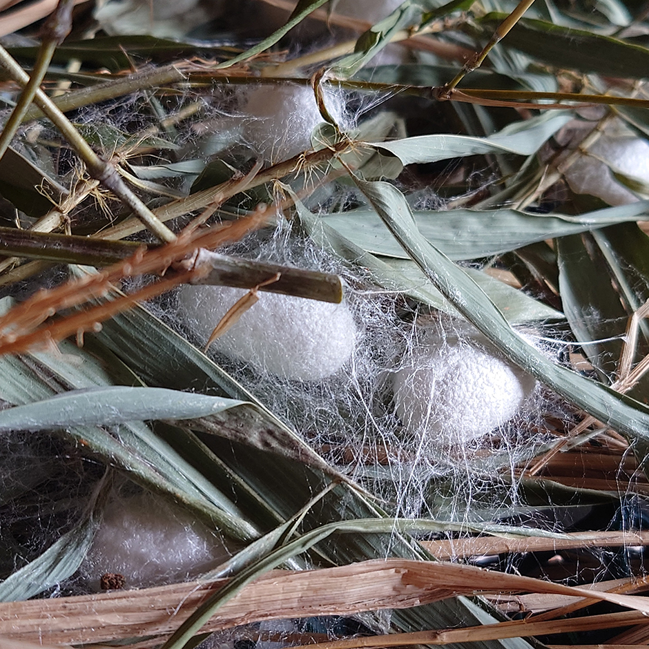 草木染工房 ひとつ屋のシルクは、蚕を育てる養蚕の工程から見つめ直した天然素材です。本ページでは、蚕が繭をつくるまでの過程と、そこから生まれる天然シルクの特徴、そして草木染との関係について記録します。素材の背景を知ることは、布の手ざわりを知ることでもあります。