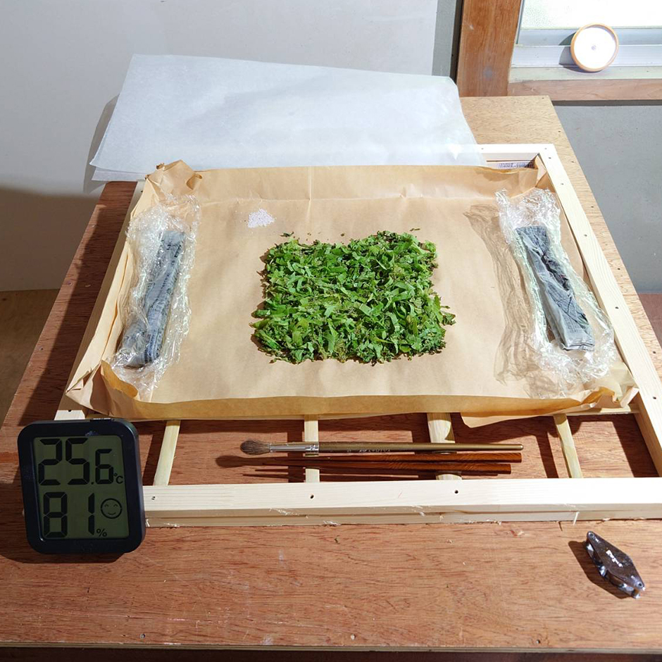 ▼ 26日目。ようやく「熟蚕(じゅくさん)」の香りがする。それを何と表現すればいいのか⋯、ちょっと甘いような香りだ。