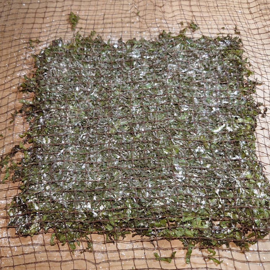 ▼ 蚕座の下に敷いた網を定期的に持ち上げて下に落ちた食べ残しの餌や糞を掃除する。これを「除沙(じょしゃ)」という。