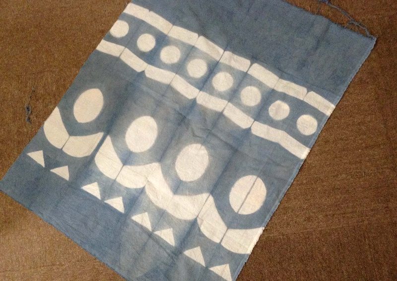 今回は「板締め絞り(いたじめしぼり)」という技法です。「板締め絞り」とは、単に「板締め」ともいう古い染色技法のひとつ。生地を折りたたんで板で挟んみ染料に浸すと、板で挟まれた部分には染料が入らないないことを利用して柄や模様を施す技法です。
