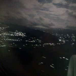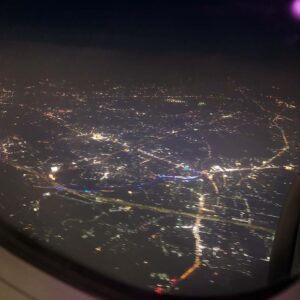 ▼ 離陸すると間もなく陽が落ち、眼下には中国の町の夜景が広がっています。