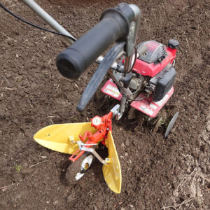 でも、こちらの小型の耕運機に取り付けた培土器(黄色い部分)は、小さいので取り扱いも楽で、早速いろんな場面で活躍しています!