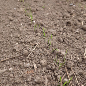 ▼ 発芽したばかりの陸稲。
