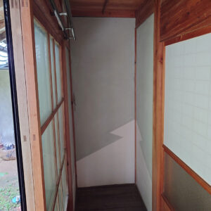 完成した棚は、寸法も角度も決して正確ではないけれど、廊下の隅にぴったり収まりました。手作りならではの温もりがあり、費用は0円! まさに“三寸大工”の仕事ですが、それでも十分。いや、十分すぎるくらいです。