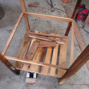 それでも作業場が散らかるたびに、「やっぱり棚が欲しい!」と思い続け、ついに重い腰を上げました。とはいえ、材料を買うほどの予算はありません(泣)。倉庫の隅に転がっていた廃材を引っ張り出し、のこぎりと電動ドライバーを手にして作業開始!