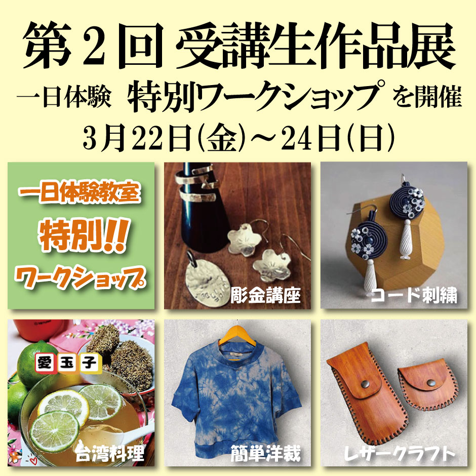 今年(’24年)も、3月22日(金)~24日(日)の間、ひとつ屋の実店舗で『第2回 受講生作品展』を開催いたします!
