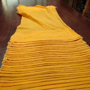 まずは全体を黄檗(きはだ)で染め、その後に絞ってから茜(あかね)を染め重ねています。さらに、藍か、その他の天然顔料を使っで模様を施そうと思っています。