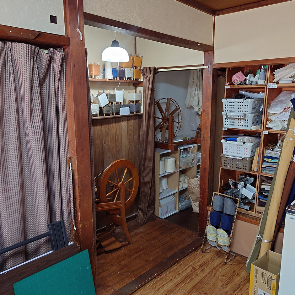 ひとつ屋(大阪・阿倍野)の2階には糸紡ぎや縫製のための作業部屋があります。ですが、この部屋には扉がありません。もともとないんです――😱