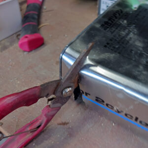 そこで、納屋に転がっていた空き缶を材料に、板を切り出しました。